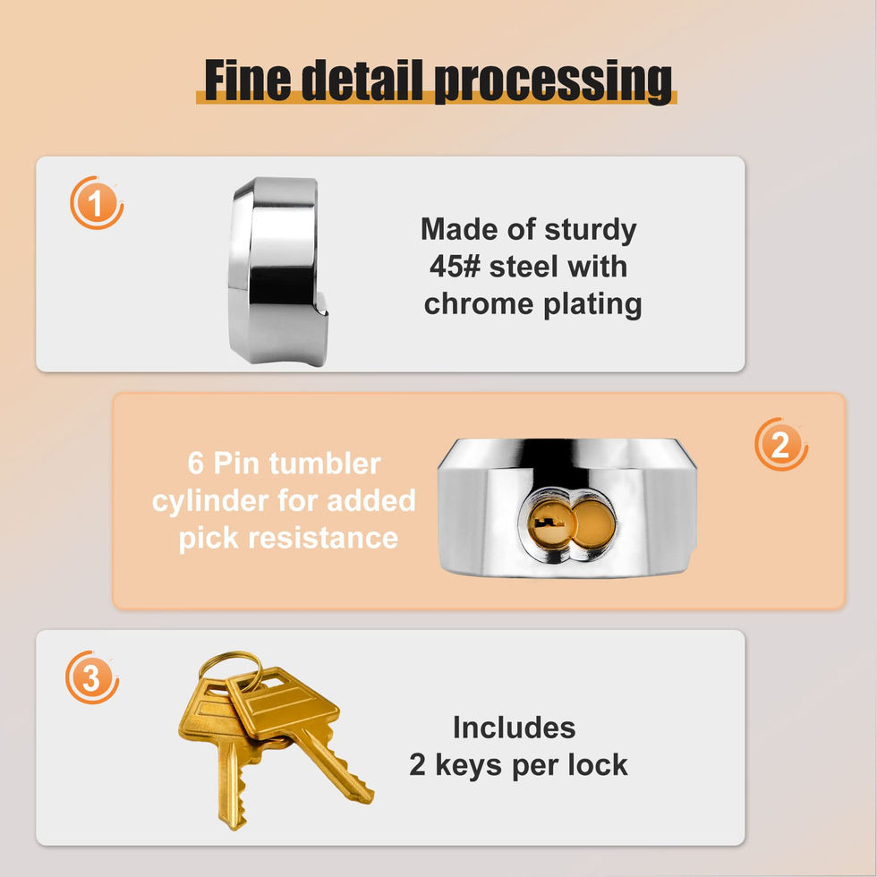 【Puck Locks High Security puck locks:】 6271 Hidden Shackle Padlocks Keyed are designed with reinforced hidden hackle for superior cut resistance. Puck lock resists pulling and prying, helps prevent lock picking for van door locks. and wire cutting. Removable solid brass cylinder and fully enclosed bolts can ensure our safety. 【Puck Locks Heavy Duty Puck Lock Dimension:】Heavy duty padlock with key is 2-7/8 inches. M8x80mm screws. 6 Pin tumbler cylinder. 【 Hidden Shackle Padlocks Wide Variety of Use:】Hidden shackle padlock offers superior protection for garage, van lock, garages, cargo trailer, shipping container lock, vending machine lock, storage locker, moving trucks, commercial vehicle, storefronts, gates, etc. 【Puck Locks Heavy Duty Puck Lock Material:】Hockey puck lock are made by tough 45# steel with chrome surface. Anti-corrosion, anti-cut, anti-pry, anti-rust etc. Meets or exceeds OEM requirements. 100% factory tested. You can contact us through "Your order" - "Get Help" - "Select", and even if the order is more than 30 days old, we can still offer an exchange or refund.