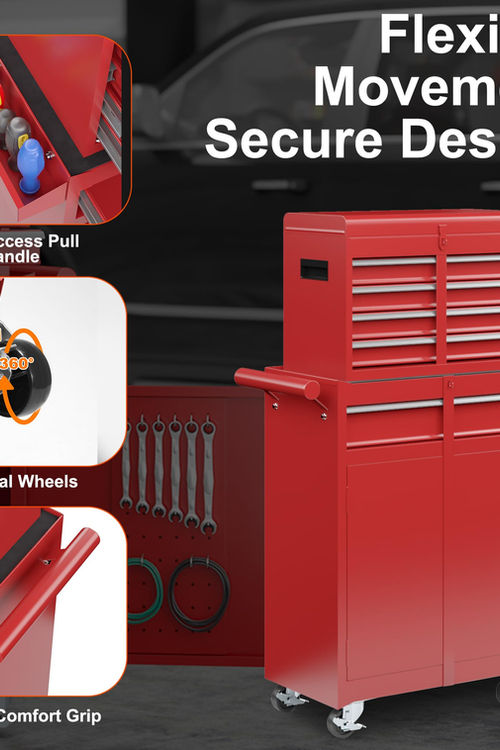 【2-In-1 Design with Detachable Tool box】AirWire toolbox features a two-in-one design, which can be easily detached into a four-drawer toolbox and a movable cabinet for flexible use. Large storage capacity, the top tool box, 5 drawers, the bottom movable cabinet, and the side tool racks provide plenty of storage space for various tools. For a space-saving option, the top toolbox can be placed in the cabinet below. 【Reinforced Packaging】Based on extensive market research, AirWire has redesigned the packaging of its toolboxes. Reinforced packaging ensures safe transportation, and the metal toolbox is wrapped in foam to provide protection during transportation. The toolbox is very easy to assemble, the main accessories are already installed, just need to install some matching handrails and wheels. 【Sturdy Structure】Push-pull tool box is made of sturdy cold-rolled steel plate with anti-corrosion and anti-rust coating for a stable structure, avoiding scratches and making it more durable; making it suitable for indoor as well as outdoor use in classic colors. The drawer is lined with EVA protective pads to protect your tools from damage. 【Easy to Move Wheels】Our rolling toolbox is easy to move with 4 wheels, two of which have brakes. When you want to fix it in one place, just lock the wheels. It also comes with two locking levers that help lock all drawers, tool trays and base cabinets to prevent drawers from sliding out and cabinet doors from opening while on the move. 【Multipurpose Application】This tool box is perfect for garages, warehouses, auto repair shops and tool rooms. Sturdy design stands up to heavy-duty use, perfect for auto repair shop and warehouse professionalsProvides an organized tool storage system for professionals in construction, auto repair and other industries, saving you as much time as possible searching for tools and increasing work efficiency.