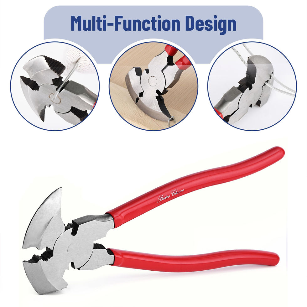 Bates Fencing Pliers - 10.8 Inch, Red, Multi Tool Fence Cutter, Nail