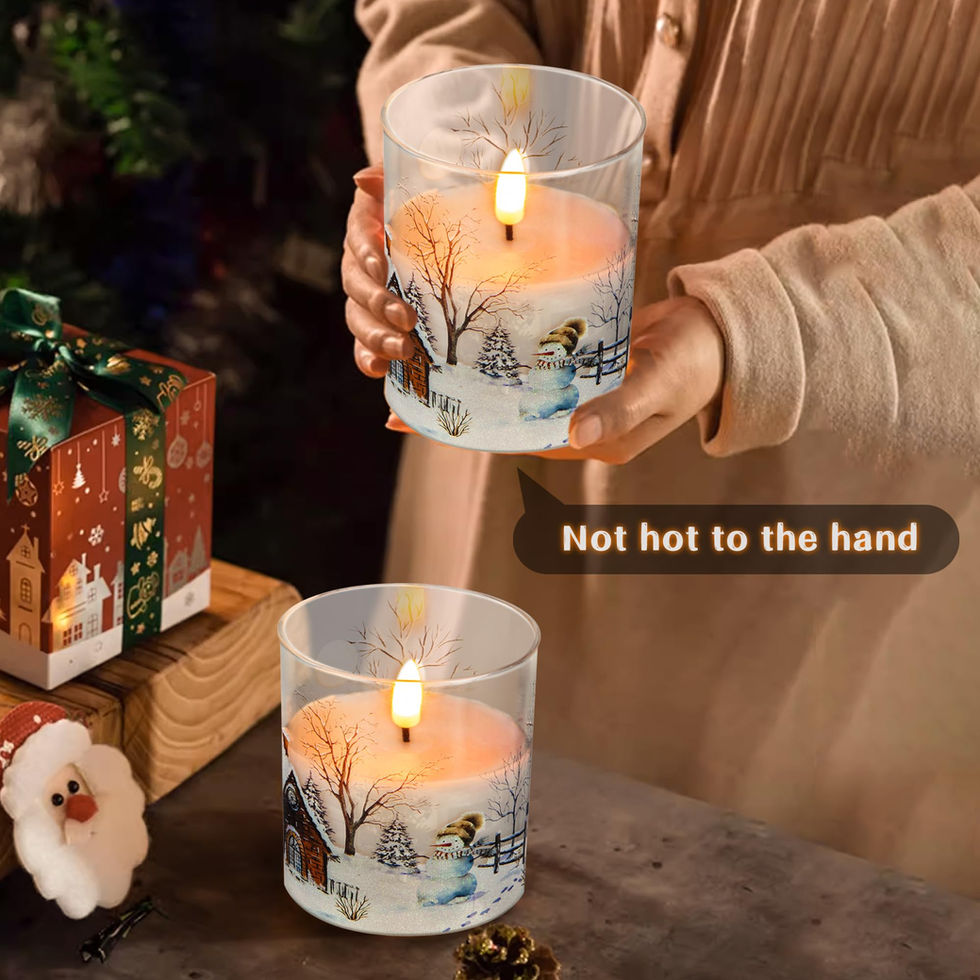 Christmas LED Glass Flameless Candles with Remote and Timer, Real Wax