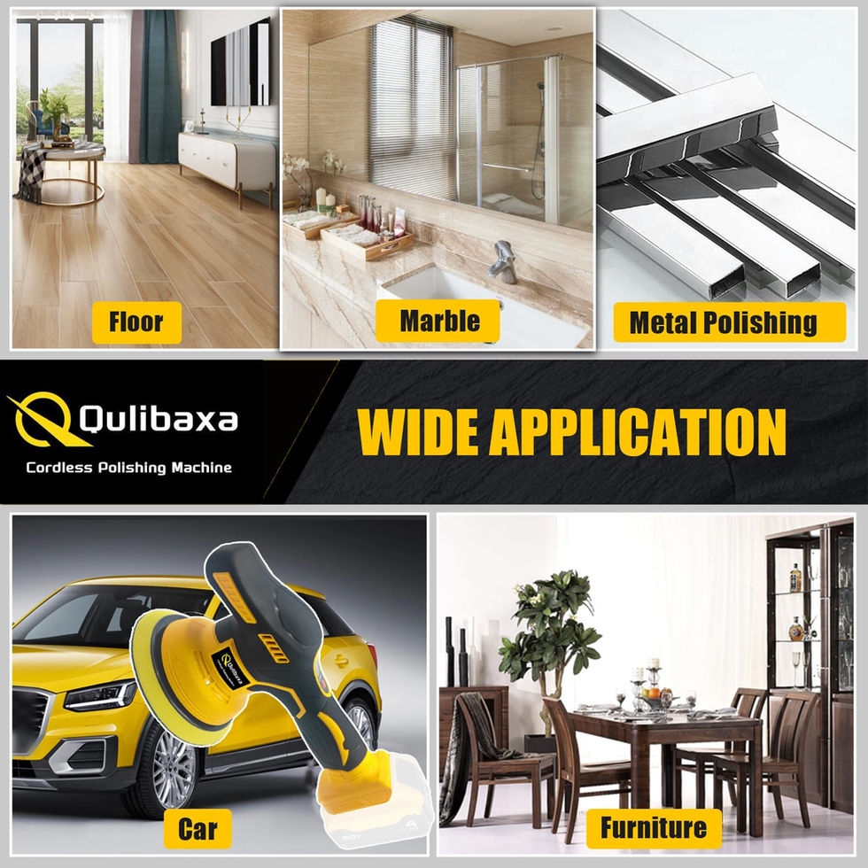 NOTE: Tool Only, Battery Not Included.Our car polisher use a gerneral color box, do not care about the color of the color box of the product color, the product is match for Dewalt 20V battery. 【ULTIMATE CAR CARE EXPERIENCE】: Elevate your vehicle's shine with our advanced cordless car buffer polisher. Perfect fits for Dewalt 20V Max batteries, this car polishers and buffers offers a dynamic 8-speed selection from 750 to 7000 RPM. From a gentle touch on the wax to aggressive paint correction, watch as your car undergoes a spectacular transformation. 【SUPERIOR BRUSHLESS MOTOR】: Relish in the relentless, whisper-quiet operation of our cutting-edge brushless motor. The high efficiency of Qulibaxa orbital polisher ensures a seamless and safe polishing experience, making it an indispensable asset for both professionals and DIY enthusiasts. 【UNBRIDLED DETAILING FLEXIBILITY】: Liberate yourself from the constraints of cords. Our cordless design facilitates smooth, unrestrained movement, allowing you to reach every curve of your vehicle with ease. The ample 6-inch base plate streamlines the polishing process, enabling you to cover more surface area and cut down on detail time. 【ERGONOMIC INNOVATION】: Crafted with the user in mind, our power polishers & buffers boasts an intuitively designed handle that fits comfortably in your palm, reducing fatigue during extended use. The soft-grip handle complements your natural movements, ensuring a stress-free, precision-driven detailing process.