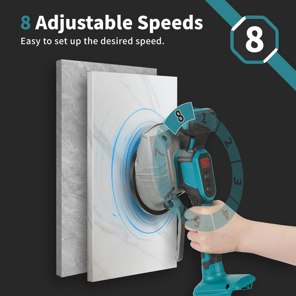 【Compatible with Makita Batteries】Compatible with Makita 18V lithium-ion batteries BL1860B BL1860 BL1850 BL1840 BL1830 LXT 400 L70 BL1415 BL1420 BL1815 BL1820 BL1845 and more. (Batteries Not Included) 【110LBS Strong Adsorption】The Suction cup diameter is 5.12 inches, and the maximum adsorption force can up to 110LBS, applicable for tile ranges from 8-47in. 【8 Adjustable Speeds】8 vibration levels for you to adjust according to the size and thickness of the tile. Just press power button to change the speed. 【Premium Material】The tile machine head is made of sturdy aluminum alloy which has strong bearing capacity, and the suction cup is made with high-quality rubber which has good wear resistance. The non-slipped handle is ergonomic which can provide a firm grip when using. 【Save Time & Energy】Lock button design can keep the suction cup in a locked state instead of holding the handle all the time, greatly save your time and energy.