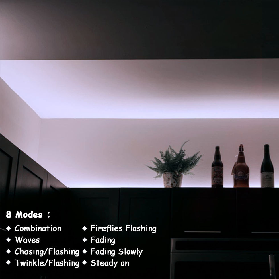 echosari New Strip Lights: 150 pieces high brightness 2835 LEDs, the light strip with a length of 16.5ft can meet most decoration requirements, 6000K cool white can create the best comfortable atmosphere Durable & Long Lasting: Newly designed battery light strip, strong brightness (you can use the remote control to adjust the brightness) and low power consumption. Please use high-quality batteries correctly to prolong the life of the lights Battery Operated: The led strip lights with battery box is portable and flexible. The LED strip lights are battery powered by 4PCS AA batteries (batteries not included). Cuttable: The cuttable design allows you to adjust the length of the light strip along the scissors line according to your preference, the part of the light strip away from the battery box will be useless after cutting Sturdy Self-Adhesive Tape: The light strip is easy to install as you just need to expose the adhesive backing and stick the light strip to a clean surface
