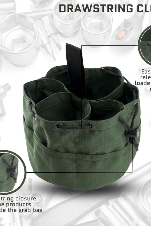☑️ DURABLE MATERIALS: : Crafted with quality in mind, the Grab bags are manufactured from heavy duty and durable hunter green color rip-stop canvas fabric for durability and longevity. These tool bags are for men and women for both professional and personal use. They can be used as a nail bag or small parts organizer, ensuring your job site remains tidy and efficient. ☑️ MULTIPLE POCKETS: : 6 large inner compartments and 12 medium sized outer pockets. Our grab bags provide a practical tool pouch option for storing various items, including screws. This set functions effectively as a screw organizer and tool bag, making it an essential small tool bag for crafts, repairs ☑️ DRAWSTRING CLOSURE: : Grab bag has easy lock and release spring loaded drawstring closure. The drawstring closure keeps the products secured inside the grab bag. The small tool bag design ensures easy transport and storage of essential tools, screws, small parts etc. It’s a must-have for mobile professionals, offering a compact tool organizer solution ☑️ DIMENSIONS: : The dimensions of the Grab bag is 10” in diameter and 7” in height. The Grab Bags is a great choice for organizing small parts, screws, small tools etc. These grab bags are multipurpose utility for organizing small tools, screws and small parts for daily use ☑️ WEBBING STRAP HANDLE: : Grab bag has a heavy duty webbing strap handle on the top for easy transport and storage. 3 or 4 Grab Bags can be stacked in a 5 gallon bucket. This small parts organizer bag is perfect for those in need of a screw organizer. Its design integrates seamlessly with other tool bags, making it a practical choice for professionals who use it alongside larger tool storage solutions