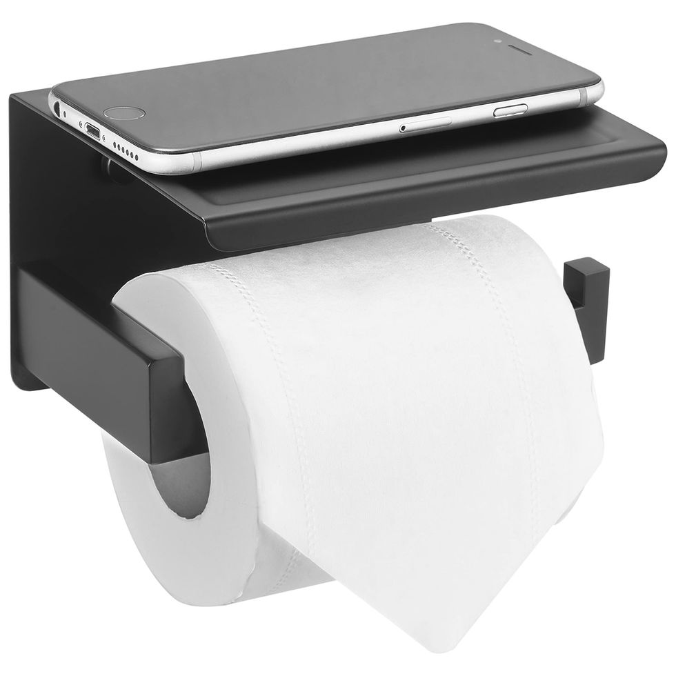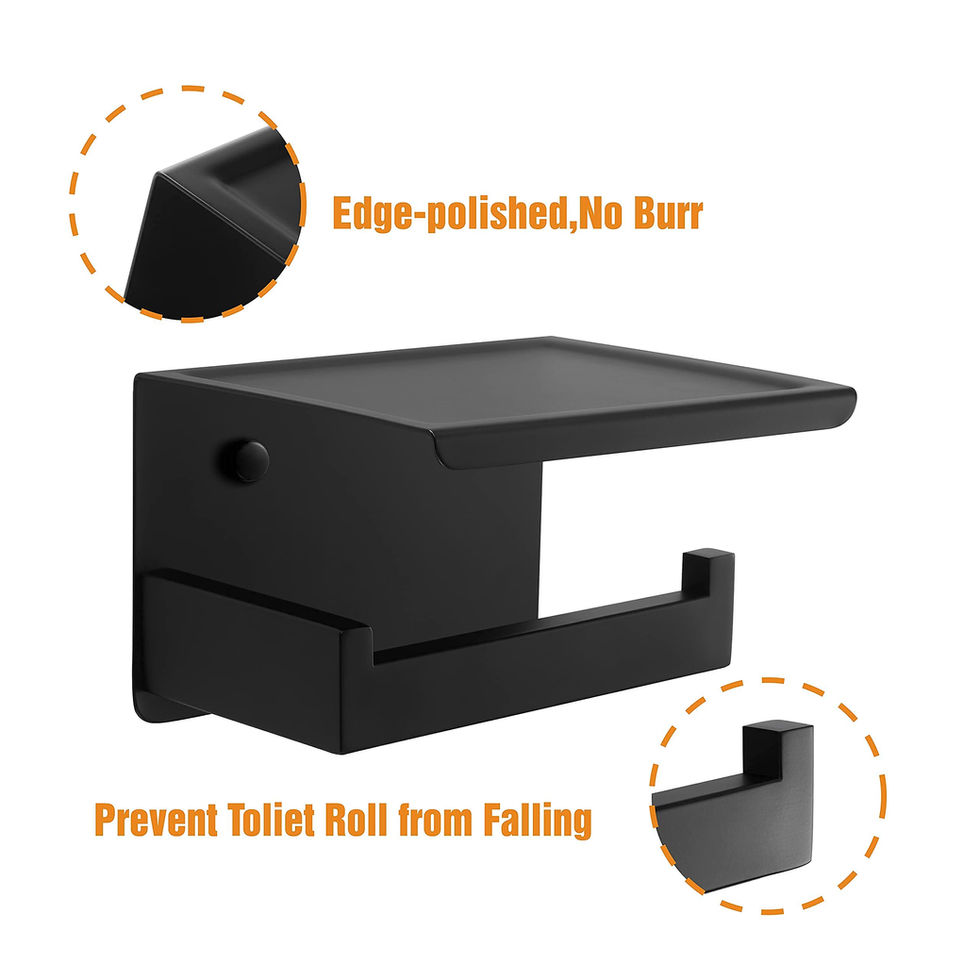 HITSLAM Toilet Paper Holder with Shelf, Stick on Matte Black Toilet