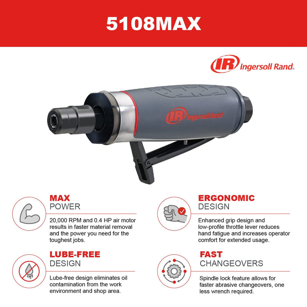 Ingersoll Rand 5108MAX Air Die Grinder, 25,000 RPM, 0.4 HP, 1/4"
