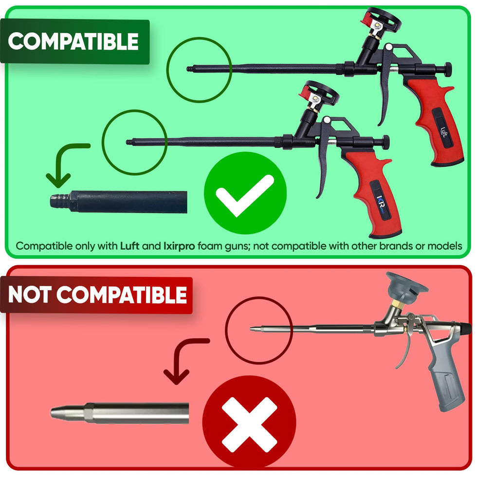 Red Nozzle 1 - Precision Wedge Spray for Vertical Surfaces: Specifically engineered for vertical applications, Nozzle 1 delivers a precise wedge-shaped spray, ideal for surfaces like walls and partitions. This design ensures consistent and even coverage, significantly reducing overspray and allowing for controlled application and a flawless finish. Red Nozzle 2 - Tailored for Ceiling Coverage: Nozzle 2 is optimized for overhead tasks such as ceilings and insulation applications. Its specialized structure evenly distributes foam, effectively preventing drips and ensuring complete coverage across horizontal surfaces. Professional Durability and Construction: Built to endure heavy-duty use, our foam gun nozzles are crafted from premium, robust materials. They are designed to seamlessly work with the ixirpro spray foam gun, making them a valuable upgrade to your toolkit for professional results. Hassle-Free Installation: Enjoy a quick and effortless installation process without the need for specialized tools. Simply swap out the old nozzle and you're ready to go. Recommended Maintenance: For prolonged use, it is recommended to keep a dedicated cleaning agent on hand to maintain the nozzles’ performance and longevity.