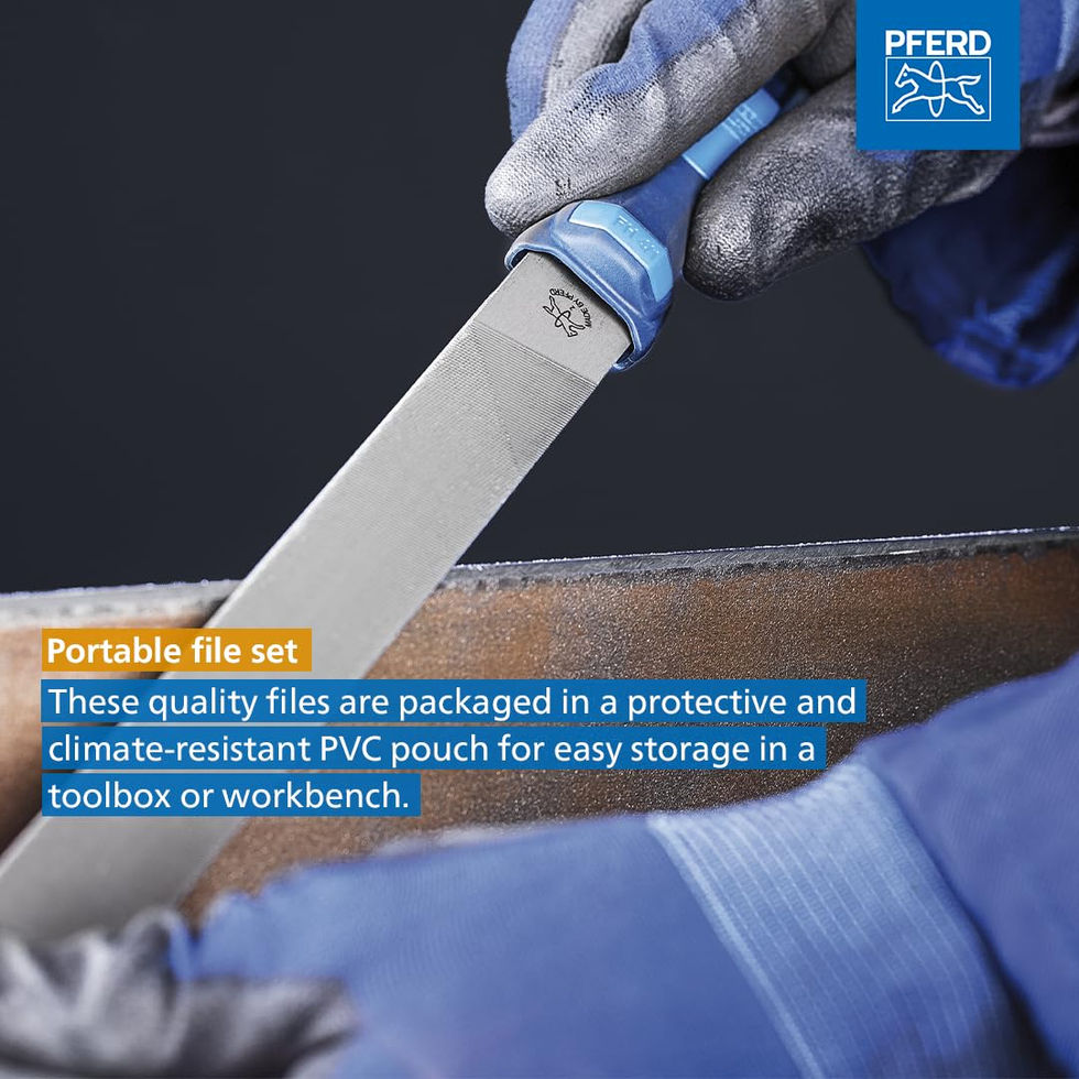 Each file with appropriate ergonomic handle Specifically designed to meet the needs of DIY users It's professional quality makes this product very versatile Machinist's files in plastic pouch QUALITY FILES: PFERD Machinist files for consistently high stock removal rate from the tip to the tang and a long service life are suitable for a wide range of applications in the workshop