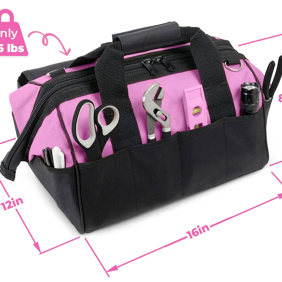 Pink Power Pink Tool Bag for Women -16" Tool Tote Bag w/ 22 Storage