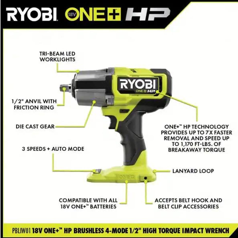 RYOBI ONE+ 18V Brushless Cordless 4-Mode 1/2 in. Impact Wrench Kit
