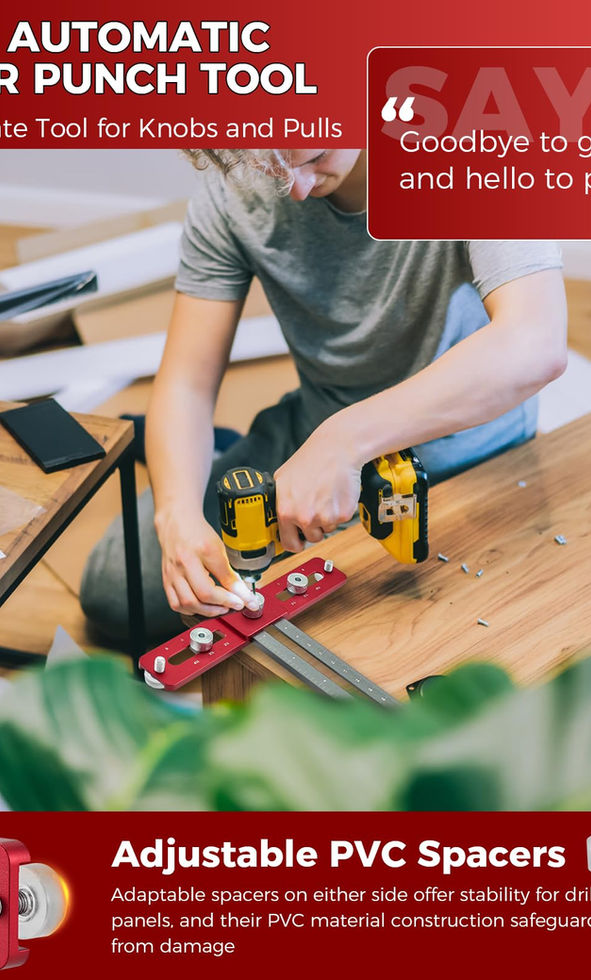 【ADJUSTABLE & ACCURATE POSITIONING】Saker drill guide for straight holes is capable of accurately positioning holes at pitch of 2 1/2”, 3”, 3 1/2”, 4”, 4 1/2”, 5” with a diameter of 4mm, up and down distance of 6.7”. This feature makes it accommodate different hardware sizes of most handle and pulls, ensuring accurate and straight holes every time. NOTE: THE SCALE INDICATION ON THE HOLE PUNCHER REFERS TO THE DISTANCE FROM THE HOLE PUNCHED TO THE EDGE OF DRAWER/CABINET DOOR 【DURABLE & ANTI-RUST MATERIAL】Constructed from high quality aluminum alloy, every component of saker cabinet hardware doweling jig is highly durable, resistant to wear and corrosion, and won't rust over time. Its quality materials ensure that this saker cabinet handle template tool is built to last. 【EASY TO USE & USER-FRIENDLY】Saker adjustable cabinet hardware jig is straightforward and simple to set up, require little to no experience. By adjusting the nut in the middle, you can easily adjust the edge distance of the cabinet or drawer, as well as the distance between the drill holes. This saker cabinet hardware jig tool can reduce the risk of mistakes and avoid wasted materials. 【PORTABLE & COST-EFFECTIVE】Saker cabinet jig for handles and pulls is both portable and cost-effective. It can be easily folded together using the middle nut, taking up minimal space and making it easy to carry. The saker cabinet pull jig allows you to drill multiple holes with precision and efficiency, ultimately saving you valuable time and effort. 【WIDELY APPLICATION】Saker cabinet handle jig can be used for installing kitchen drawers, cabinets knobs, door handles, drawer fronts and more. This saker drawer pull jig is ideal for builders, professionals, cabinetmakers, and even novice/beginners, making it an excellent tool for anyone in need of precision drilling and installation.