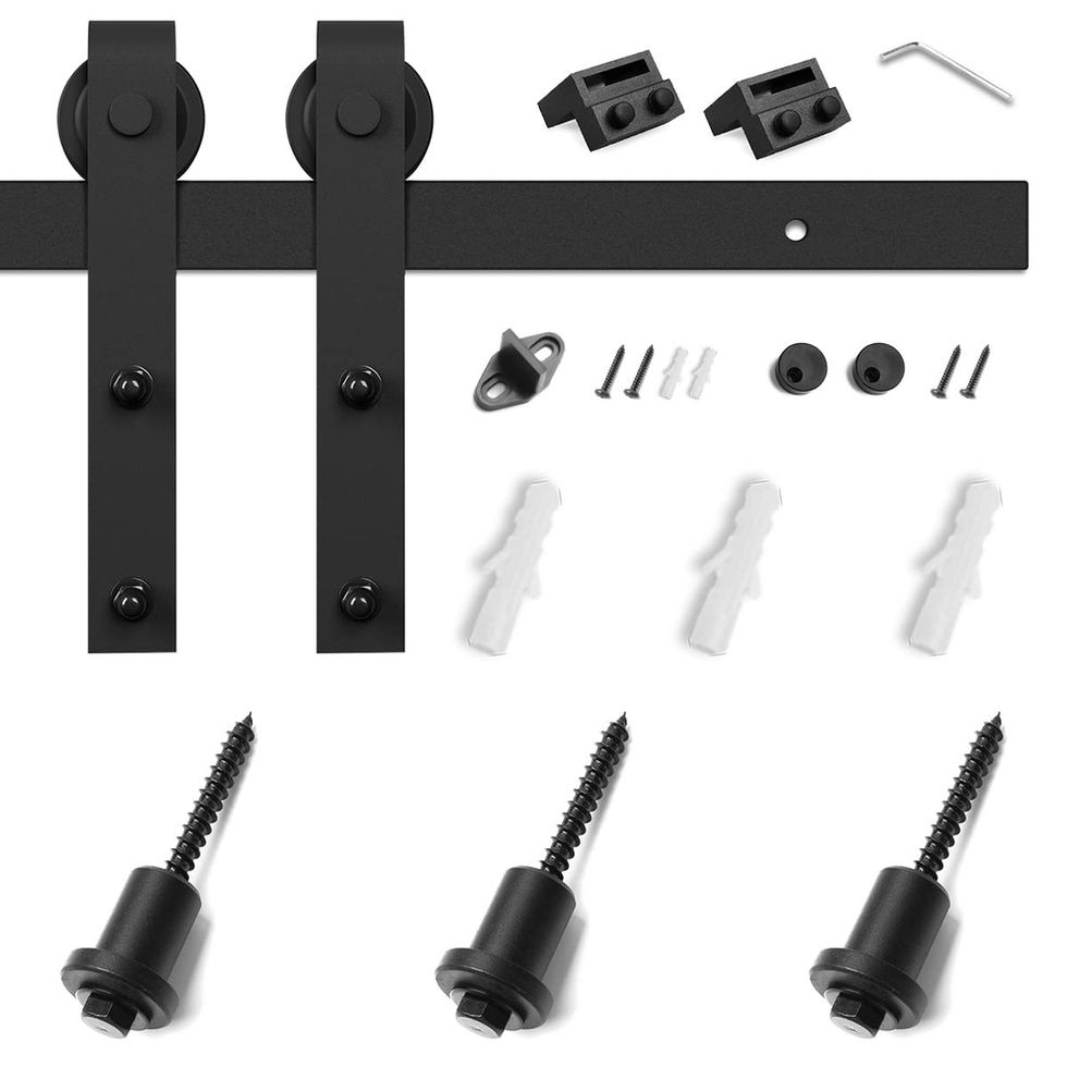 【WHY CHOOSE US】Our track comes in two solid pieces, instead of mutiple small pieces. It's easier to get level, install and keep straight. As you slide the door it won't hits the seams so the door can roll smoothly and steadily. 【EASY TO INSTALL】Professional instruction and customer service team help you solve all installation problems in time. Save the cost of finding a Carpenter or decoration team. 【PACKAGE INCLUDED】The picture shows the actual hardware you will receive.【DOOR NOT INCLUDED】And we provide you with an accurate list in the Installation instruction. 【DOOR WEIGHT CAPACITY】Door Weight Limited 220lbs. Fit door panel thickness: 1 3/8" to 1 3/4". The door panel width should be at least 2" wider than the opening or the opening may not be fully covered. 【THE BEST CHOICE FOR YOUR HOUSE】This modern twist on the classic barn door not only saves space, it allows the ability to open up multiple rooms without the annoyance of a swinging door.