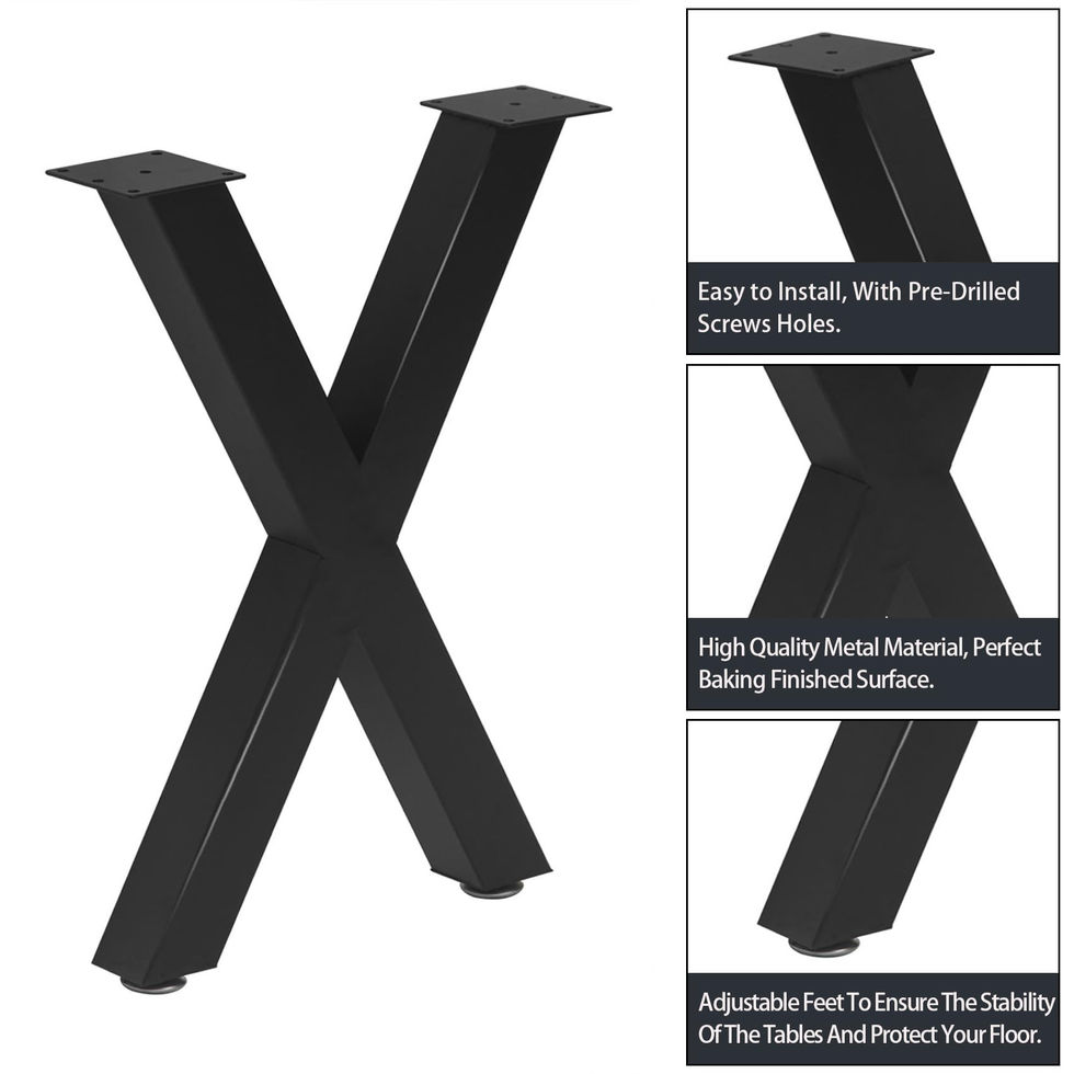 Metal Coffee Table Legs: Szie: 22" H x 13.8" W, Color: Black, Material: Iron, Surface Finish: Baking finished Sturdy and Popular Bulid Up: These coffee table legs are made by heavy duty metal pipes. The maximum load weight of one set of legs can up to 800 lbs Baking finish surface treament: After three processes of baking, the surface of the product is extremely smooth, and there is no grain to the touch. The most important thing is that the baked surface paint is not easy to peel off and scratch Suitable For Any DIY Furniture Project: These 22 inch table legs are prefect for custom bench legs, coffee tables, end table, side tables, TV stands, nightstands and so on Easy to install: Pre-drilled holes in mounting plate allow for easy and quick installation