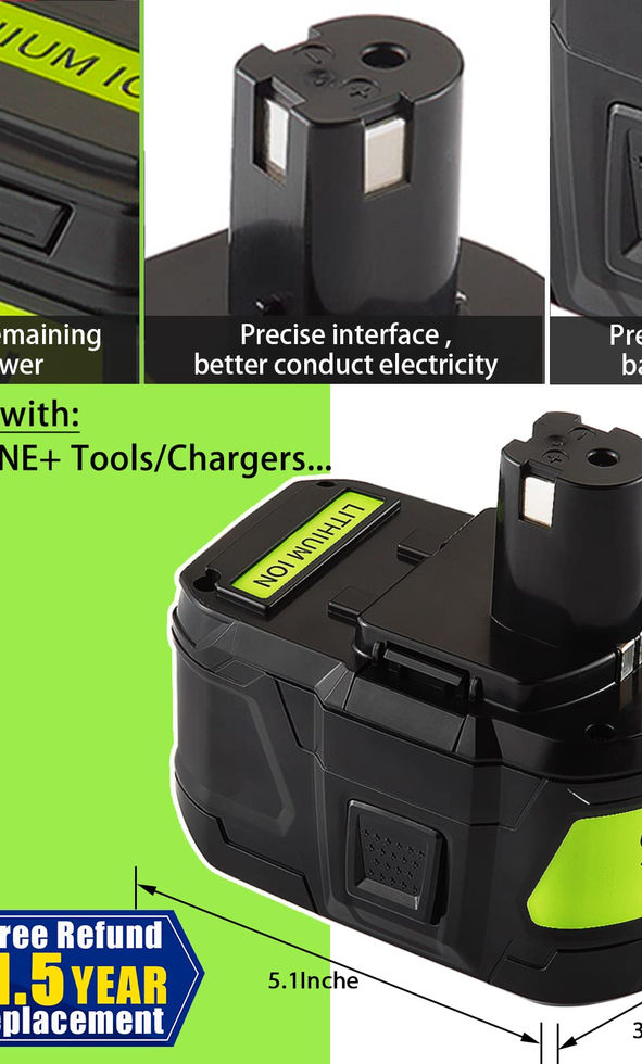 ✔【3RD-GENERATION UPGRADE LITHIUM!】Info:18V,9000mAh,Replacement for Ryobi battery 18V Lithium series | Make with 3rd-Generation upgrade lithium cell,Eliminate the shortcomings of short life and occasional failure to charge the common alternative batteries in the past.Provides 4X runtime and faster charge speed. ✔【Widely Compatibility & Seamless Fit】100% Fits all original Ryobi 18V chargers & Ryobi 18V Tools ✚ Replacement for all Ryobi 18V Battery p102, p103, p104, p105, p107, p108, p109 ... ✔【4 LED indicators】4 LED indicators monitor remaining battery power, reducing down time for your RYOBI 18V Cordless Drill / Blower / Saw / Vacuum / Lawn Mower / Impact Driver / Screw Gun ... ✔【Intelligent Protection】Built-in circuit protection ensures both safety and stability. ✚ No memory effect,can be store, charged or discharged as needed without loss of capacity.(CE/ ROHS / PSE certificate.) ✔【 What You Get ?】1* 9.0Ah Replacement Battery For Ryobi 18V Battery + 1* User Manual + Excellent Service:{Free refund or replacement for a year !!} & {24*7 hours prompt after-sales service.}
