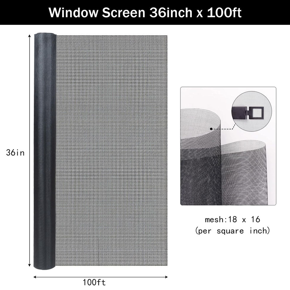 【HIGH QUALITY MATERIAL】: The window screen mesh roll is made of durable fiberglass material, with excellent durability and tear resistance, high temperature resistance, not easy to curl, not easy to break or crease after long-term use, and easy to care and clean, just Just wash with water and it can withstand even the harshest weather. 【Easy to Install and Repair】: Our Thinkahead window screens are designed to be easy to install, allowing for quick and easy repairs, covering holes in windows, even for DIYers. Simply cut the roll of screen to the size of your window and you can enjoy a bug-free environment. 【APPROPRIATE SIZE】: Thinkahead window screens are packaged in rolls for easy transportation. This window screen roll measures 36 inch x 100 feet, with a mesh size of 18 x 16 (per square inch). Additionally, it ensures that the view can enjoy the outdoor scenery. 【Effective Insect Screen】: Say goodbye to annoying insects. Our window screens act as effective insect screens, keeping flies, mosquitoes and other pests out while letting in fresh air. Enjoy the cool breeze without worrying about bug bites. 【ENCLOSE PORCHES AND TERRACES】: Insect screen rolls can be used to renovate enclosed terraces, create terrace options, and provide screening for water features and windows in the backyard, suitable for various DIY projects.